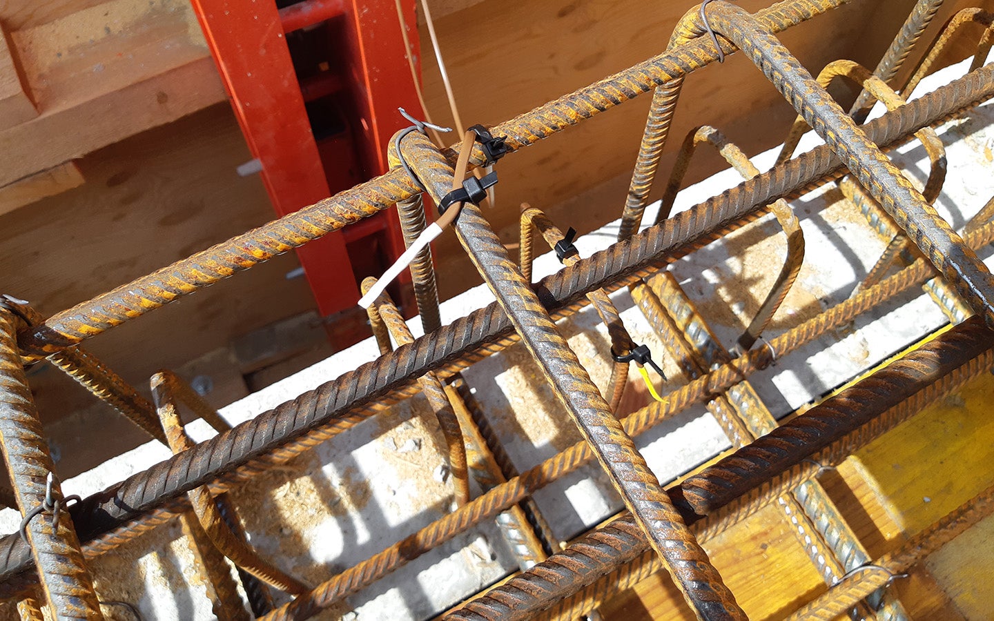 Attach the desired number of sensors to the reinforcement and connect them to a "measuring node". This automatically sends the data to the hub, which forwards it to the web application. -